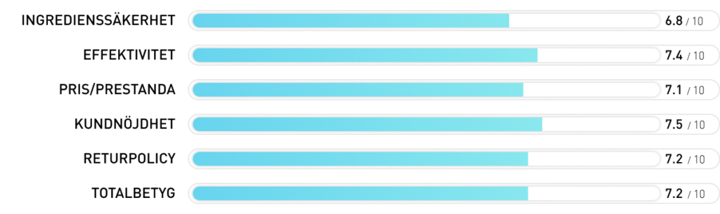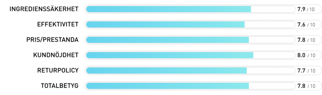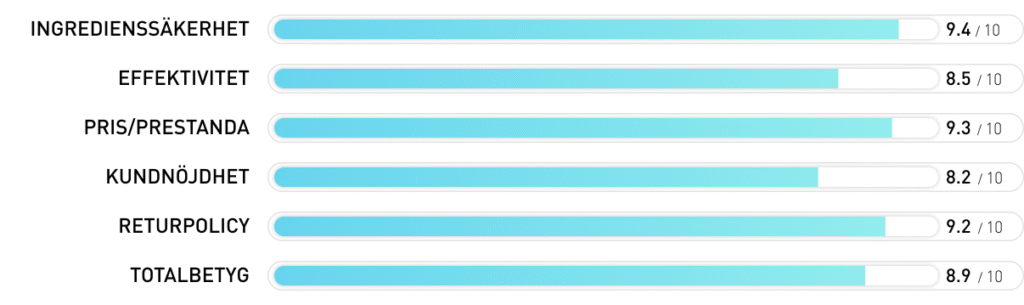 Collaxan är en stark kandidat till en topplacering i vår rangordning och uppfyller nästan alla viktiga kriterier för ett effektivt ledtillskott. Det tappar dock något i betyg eftersom ingredienserna saknar patentskydd, vilket kan indikera en mindre unik sammansättning jämfört med konkurrenter som använder kliniskt dokumenterade och skyddade formuleringar.