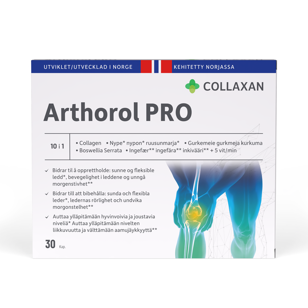 Vinnaren i vårt test är Arthorol Pro, då den kombinerar många fördelar i ett enda kosttillskott. Fokuset ligger på det vegetariska Ovomet®-kollagenet från äggskalsmembran – en av de bästa källorna till kollagen, Boswellia® Frankincense extrakt och Curcugreen® gurmeja extrakt, i den välbalanserade 10-i-1 multi-aktiv-komplexet.