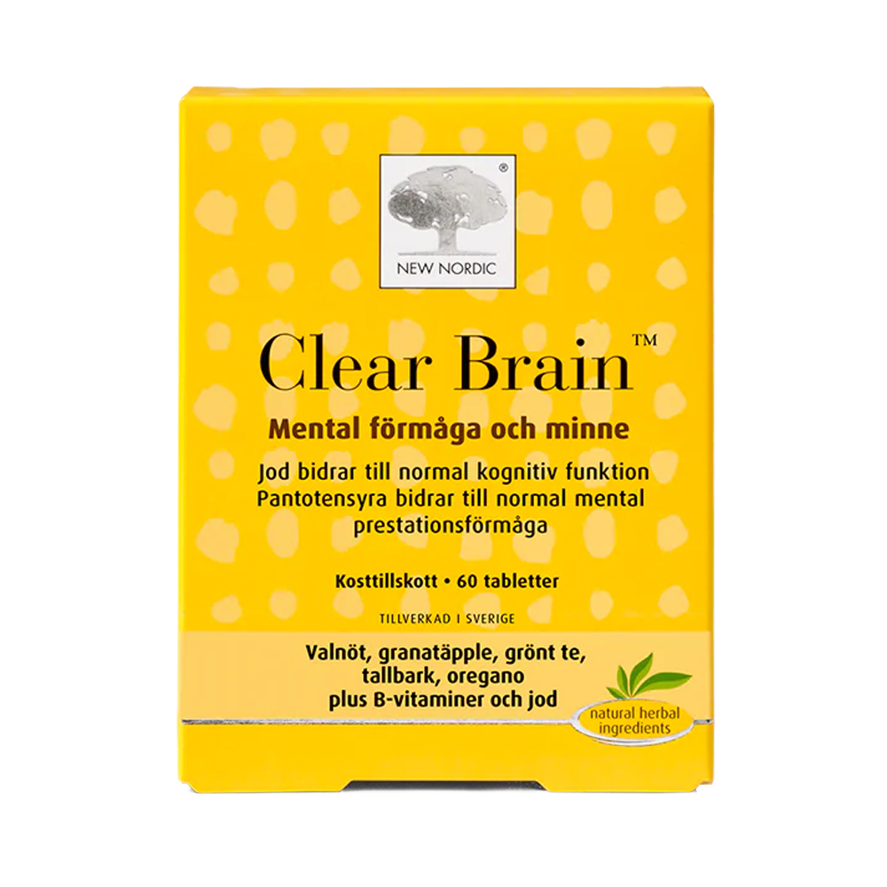 Clear Brain från New Nordic innehåller en blandning av växtextrakt, vitaminer och mineraler som ska stödja minne och kognitiva funktioner. Viktiga B-vitaminer, rosenrot och grönt te-extrakt ingår, men doseringen av vissa ingredienser kunde ha varit högre.