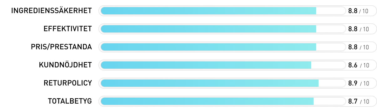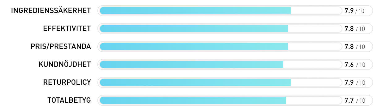 Vi har också tagit hänsyn till användarvänlighet – doseringsform och antalet kapslar eller tabletter som måste sväljas. Dessutom har vi bedömt kundnöjdhet för att jämföra vår egen bedömning med flertalets åsikt.
