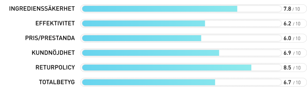 - Lägre doser av aktiva ingredienser jämfört med topprodukter